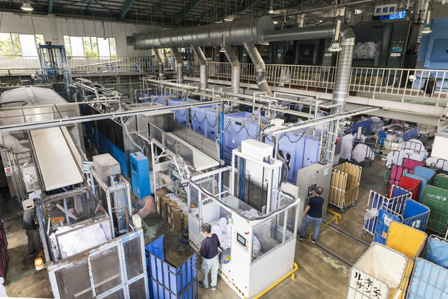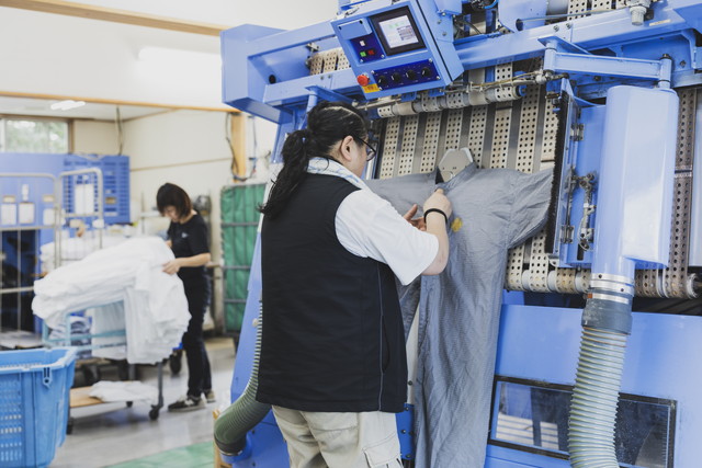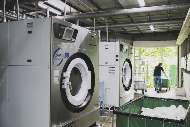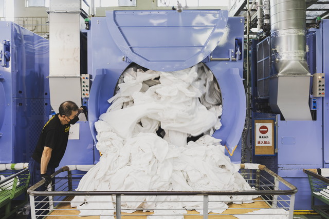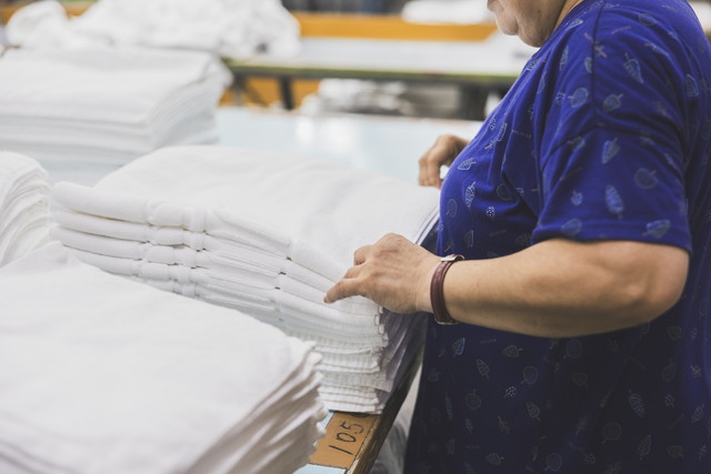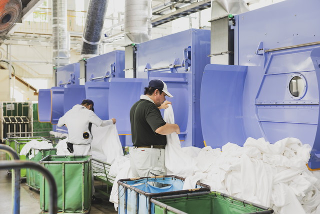 当施設では、タオル類やガウン等のホテルリネンサプライ用品のクリーニング作業を行っております。