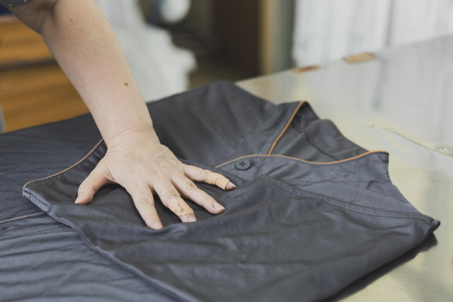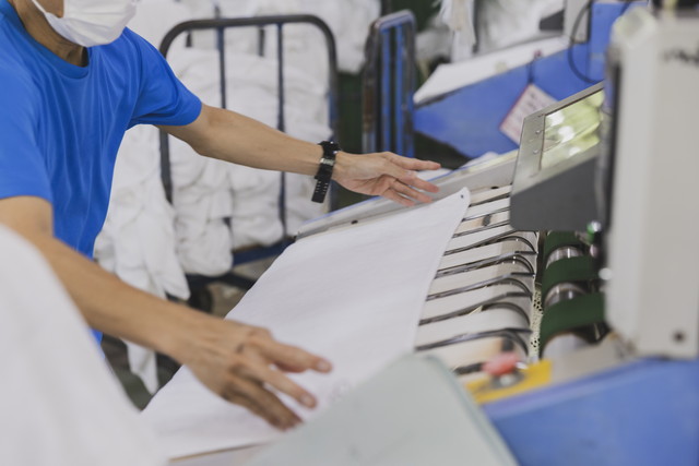畳んだタオルやガウンを包装し、棚へ保管します。